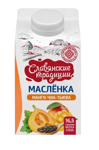 Напиток кисломолочный "Маслёнка" на основе пахты "Манго-чиа-тыква" 1,5% 0,5 кг Брестский мясокомбинат — Цельномолочная продукция из Беларуси.