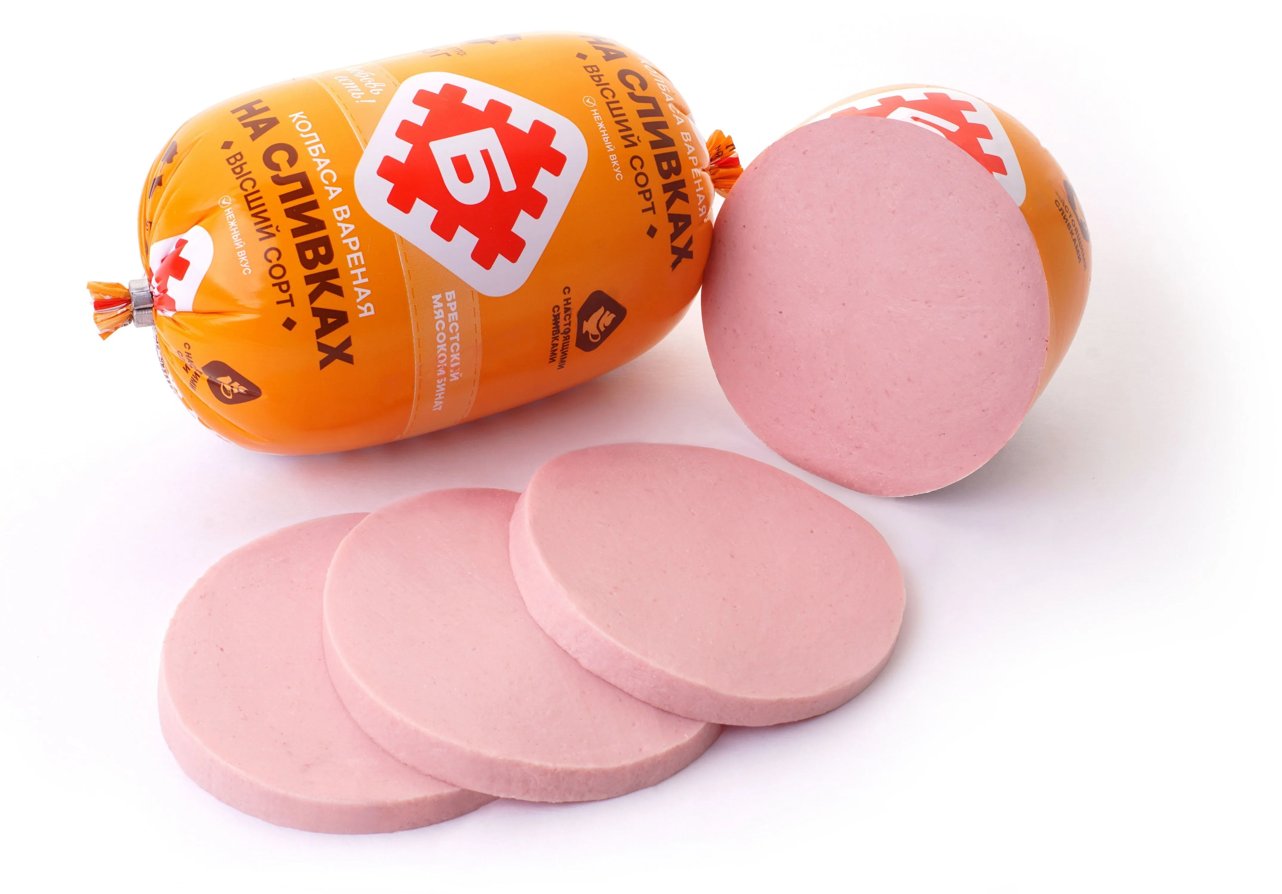 Колбаса вареная "На сливках" 650 грамм Брестский мясокомбинат — Белорусские колбасы фиксированный вес оптом из Беларуси.