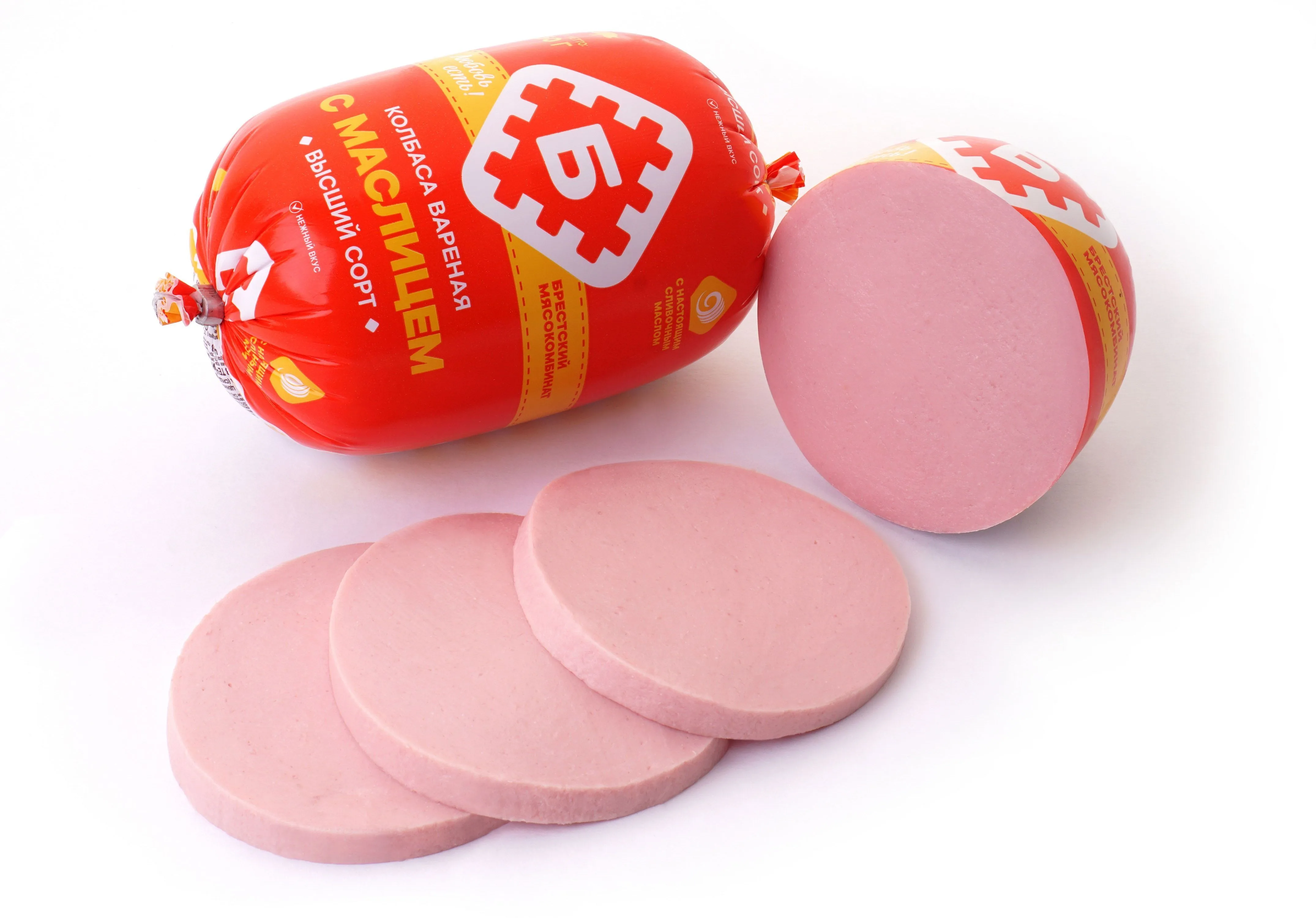 Колбаса варёная «С маслицем» 650 грамм Брестский мясокомбинат — Колбасы из Беларуси.
